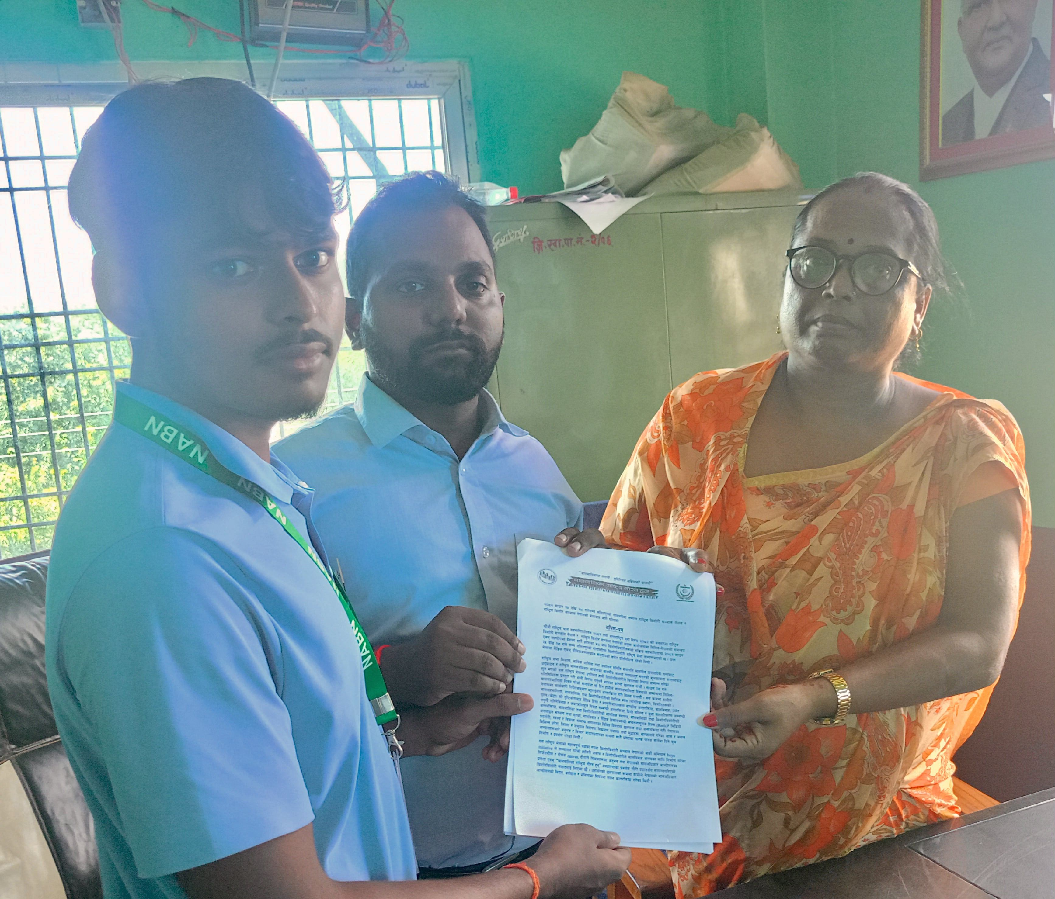 न्यूज ब्यूरो, जनकपुरधाम। राष्ट्रिय किशोर सञ्जाल नेपालले बालबालिका र किशोर–किशोरीसम्बन्धी १० बुँदे ध्यानाकर्षण पत्र शहिदनगर नगरपालिकालाई हस्तान्तरण गरेको छ। केन्द्रीय समिति सदस्य राजन दासले नगरपालिकाकी उप–प्रमुख सुनिता सिंहलाई ध्यानाकर्षण पत्र बुझाएका हुन्।