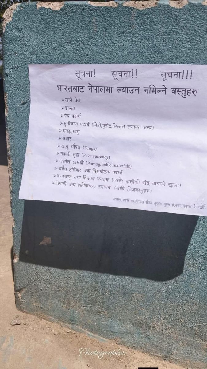 बालेन सरकारले पछिल्ला केपी ओली सरकारले गरेको निर्णयलाई बोर्डरमा कडाई गरेपछि सशस्त्र प्रहरीले सीमामा ल्याउन नपाउने समानहरुको सूचि टाँस गरेको हो । जसमा खाने तेल समावेश गरिएको छ ।