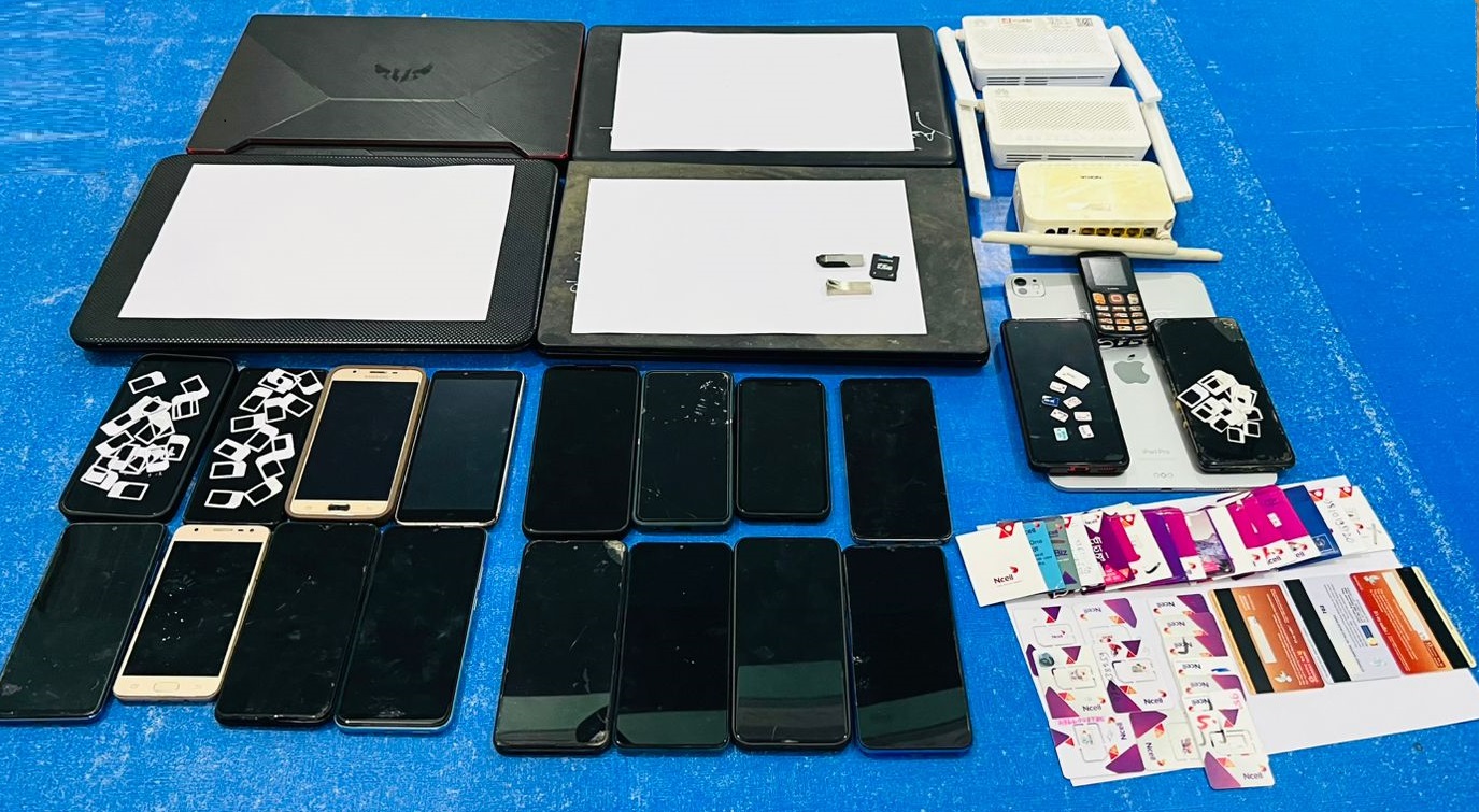 प्रहरीले अभियुक्तको साथबाट विभिन्न कम्पनीका १९ थान मोबाइल, ४ थान ल्यापटप, एप्पल कम्पनीको १ थान आइप्याड, ठगीमा प्रयोग भएका २० थान सिम कार्ड, ५५ थान सिम कभर तथा ३ थान इन्टरनेट राउटर बरामद गरेको धनुषाका प्रहरी नायब उपरीक्षक गणेशबहादुर बमले जानकारी दिए।